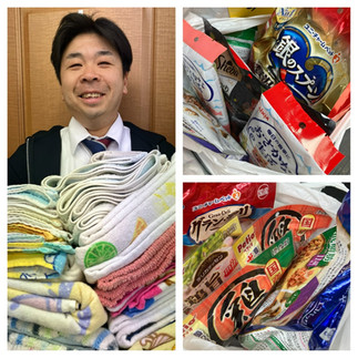 アイガード社員達で集めた古タオル・ご飯やおやつ等、団体様にお渡しできました!